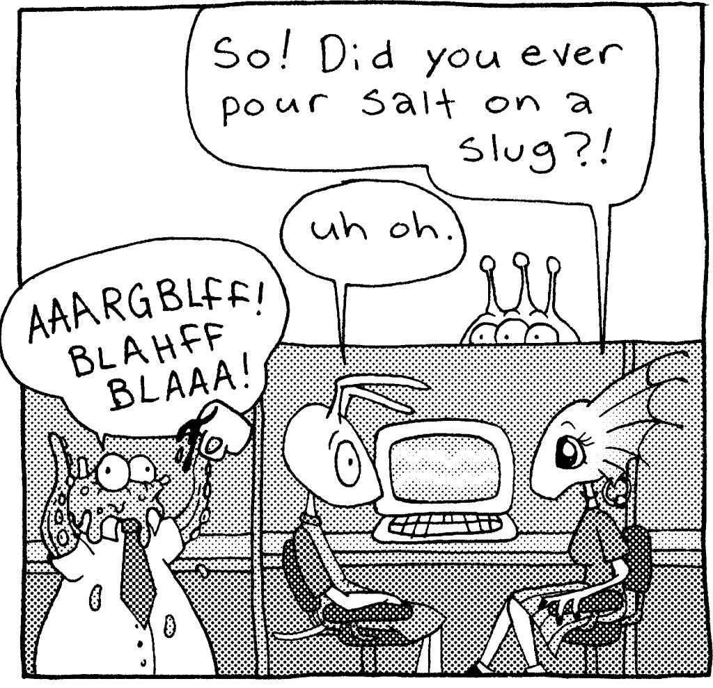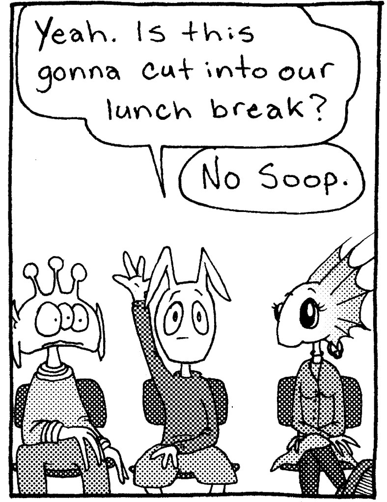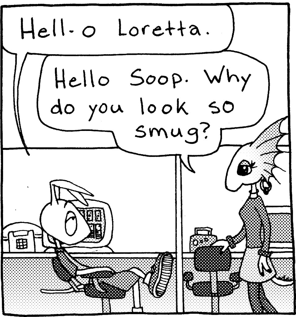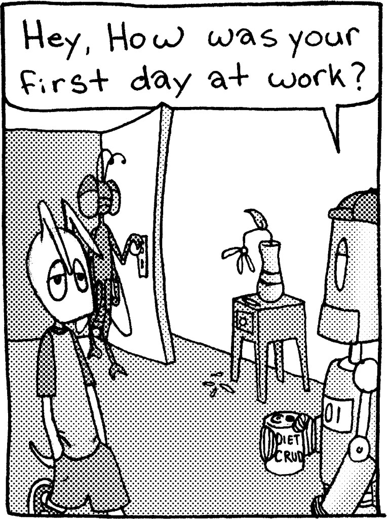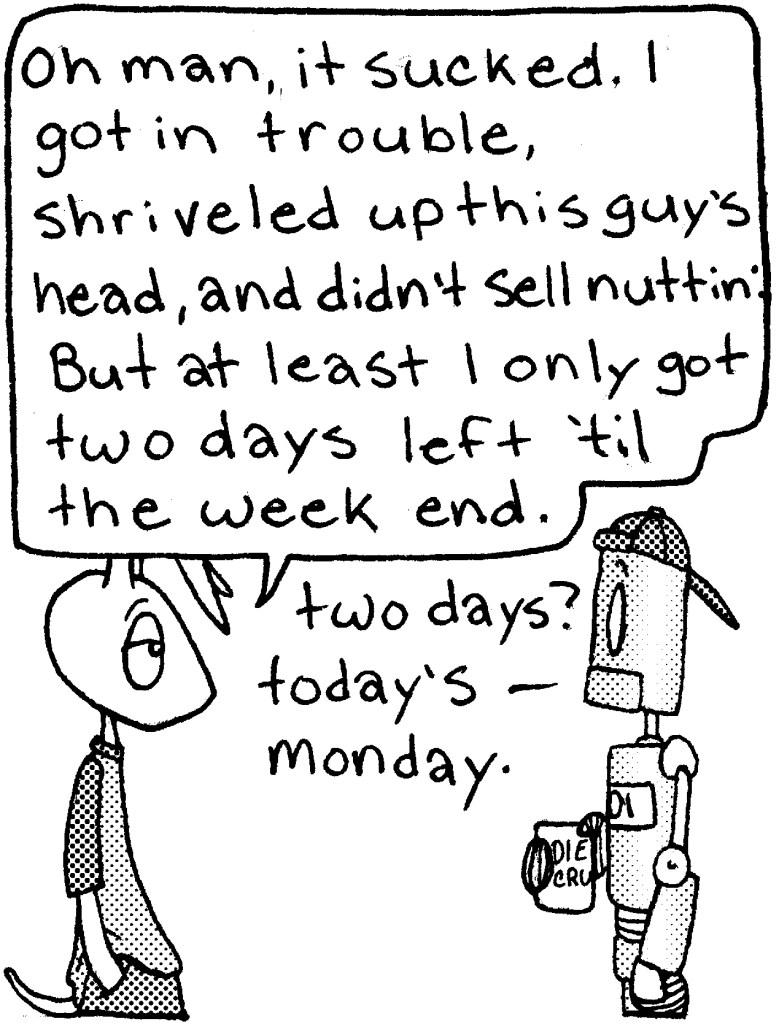 Originally published March 3, 2000. Full disclosure: Blog is based on a guy I worked with at the Rutger’s Book Store in New Brunswick, NJ. When he’d see me and my coworkers (most of whom were friends of mine) slacking off, he’d tell our manager. I suspect that our manager was more annoyed at “Blog” than he was at us, but I’ll never know. My comic was published in The Daily Targum and every day he would read the comic section. A small bit of retaliation with no bodily harm. 😀