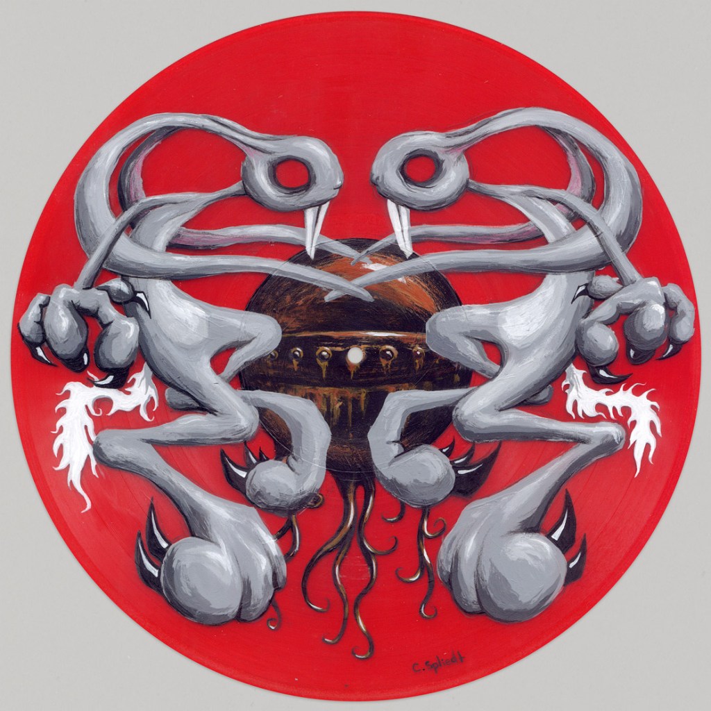 Painting on vinyl always looks so cool. But it’s challenging because A) your brushstrokes want to follow the grooves of the record and 😎 you can not mess up! He’s some twisted bunnies I painted.