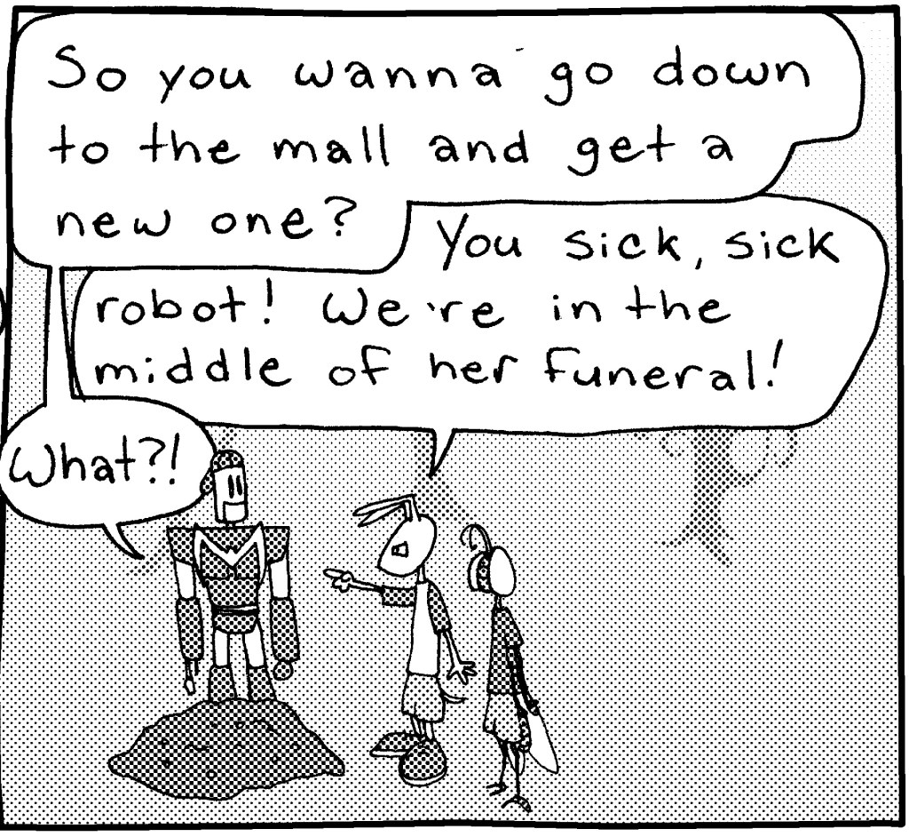 The guy on the left is based on this dude I worked with at the Rutgers Bookstore way back in the late 90s. He sucked. And that was kind of how he looked.