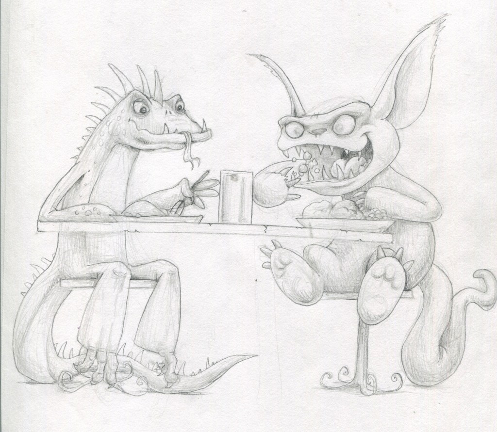 Little Monsters Having Dinner December 2, 2023 ~ C. Spliedt ~ Leave a comment From the sketchbook. Share this: Click to share on X (Opens in new window) X Click to share on Facebook (Opens in new window) Facebook Click to share on Tumblr (Opens in new window) Tumblr Like Loading...